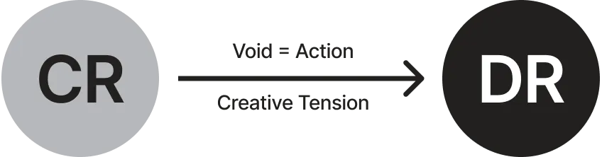 *The creative tension between your current reality and desired reality creates a void that is filled by aligned action toward you desired reality.